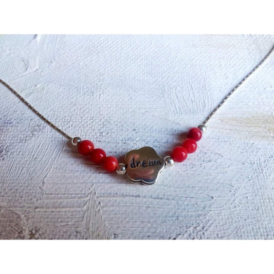 Sterling silver charm necklace "dream" with red beads