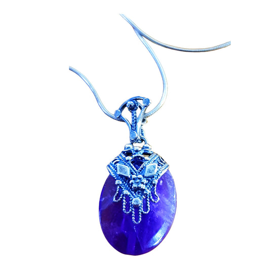 Sterling Silver Chain with Pendant Turquoise / Lava / Amethyst/ Coral with a gorgeous filigree hamsa