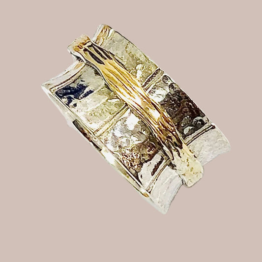 Sterling Silver & Gold Spinner Ring – Handmade Israeli Meditation Ring for Women
