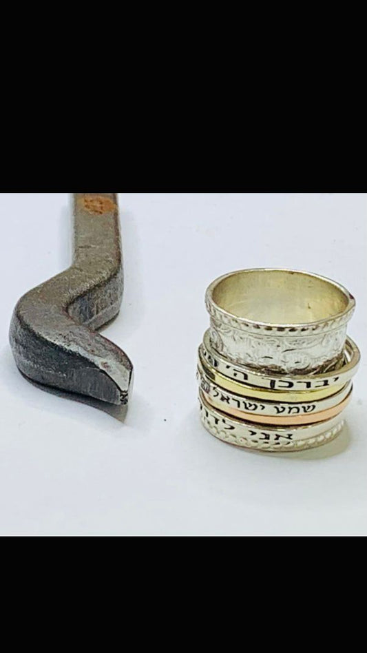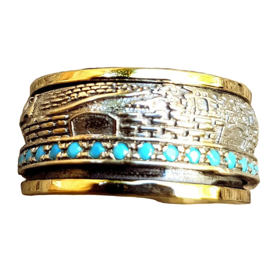 Spinner Ring for Women – Sterling Silver & Gold Jerusalem Hebrew Meditation Ring | Handmade Israeli Jewelry