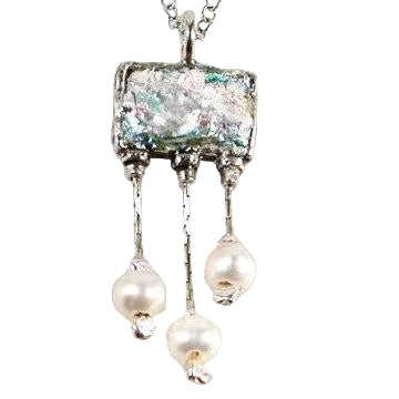 Roman Glass Jewelry Pendant | Silver Necklace | Israeli Jewelry | Bluenoemi