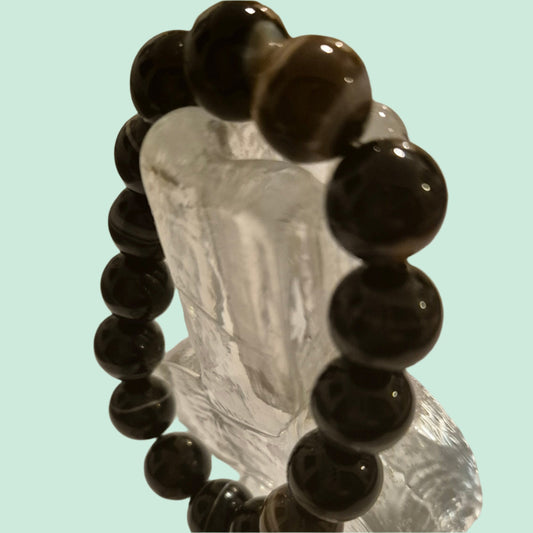 Bracelet Silver Charm and Onyx Unisex Bracelets for Men and Women. Horseshoe charm.