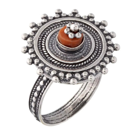 Sterling silver ring Israeli designer bohemian ring set Blue Opal or red Coral