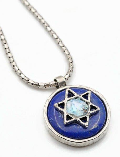 Star of David Roman Glass Necklace – Sterling Silver Handmade Jewelry from Israel