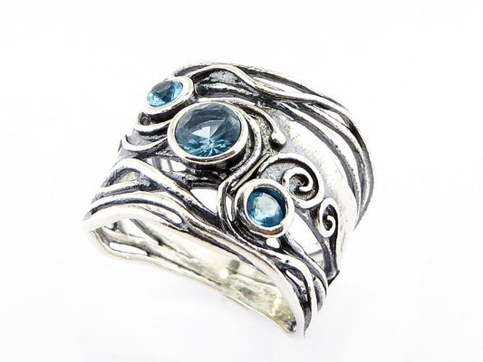 Bluenoemi Band rings for women. Set Blue Topaz, sterling 925 rings.