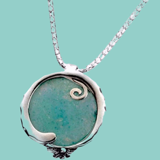 Roman glass jewelry pendant, sterling silver necklace 925 jewelry