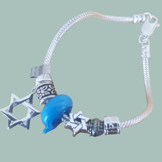 Star of David bracelet Jewelry for woman, silver beads and charms.
