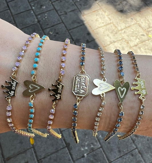 Zircons bracelets with quotes and words.