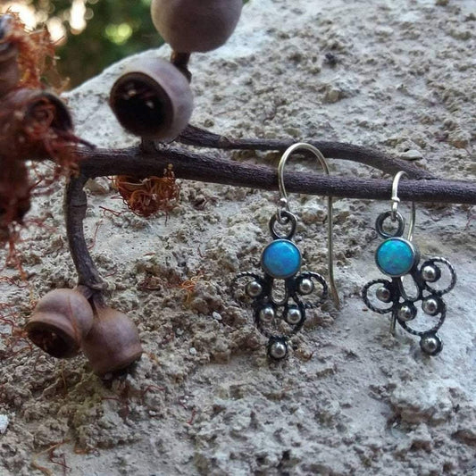 Silver earrings, Filigree silver earrings, opal earrings. Sterling silver jewelry