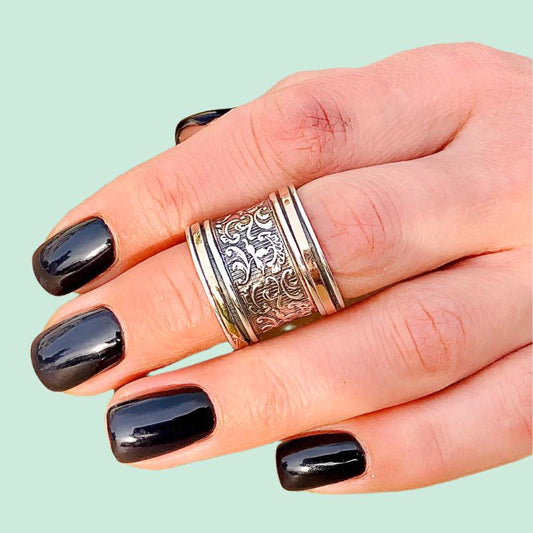 Wide Sterling Silver Spinner Ring with Gold Bands – Meditation Ring for Women | Bluenoemi