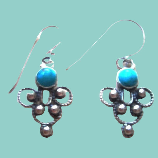 Sterling Silver Blue Opal Earrings, Israeli typical silver jewelry