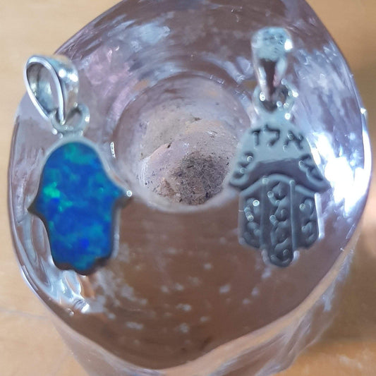 Silver hamsa Jewelry Aled blue opal 16 mm long