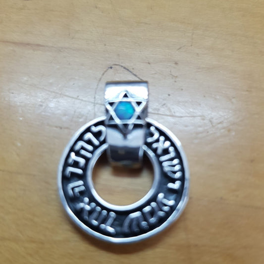 Silver necklace Shma Israel with Star of David pendant set blue opal. Symbol of Faith and Identity.