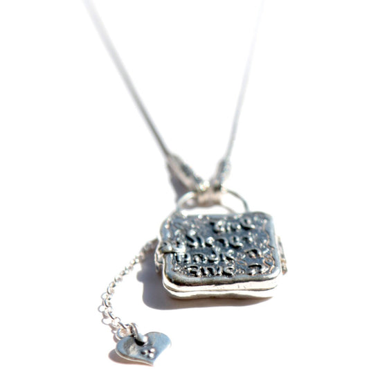 Sterling Silver necklace locket engraved with Shma Israel Prayer with a charm heart adorable jewelry