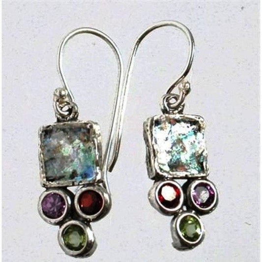 Sterling silver earrings, "roman glass earrings " , Israeli roman glass jewelry