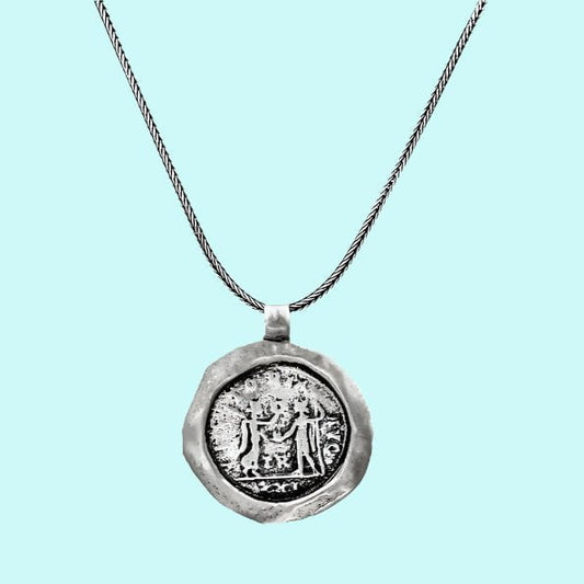 Collar de réplica de moneda romana Colgante collar de plata de ley
