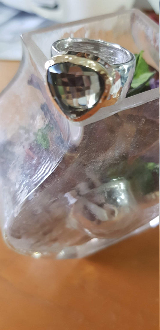 Anillos para Mujer Anillo de Plata de Ley y Oro de 9 kilates engastado con una amatista verde para mujer.