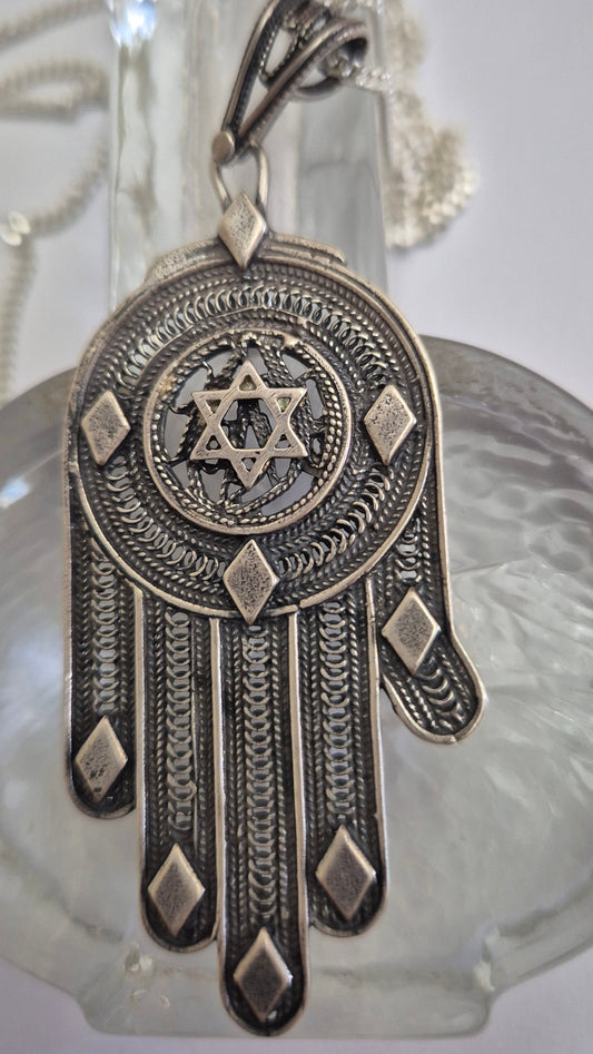 Colgante Hamsa de plata plata de primera ley 925 joyería étnica Estrella de David