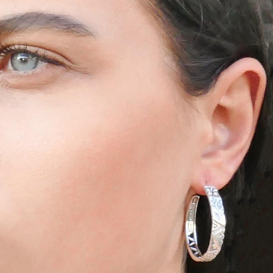 Pendientes aros de plata grandes. Pendientes de diseño florales de plata