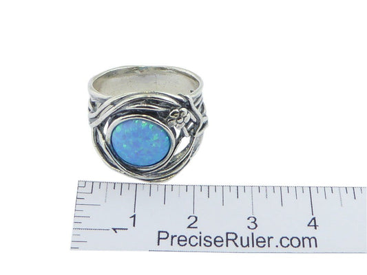 Bague Bluenoemi en argent sterling pour femme. Bague Israël. Serti d'une pierre d'opale de laboratoire bleue.