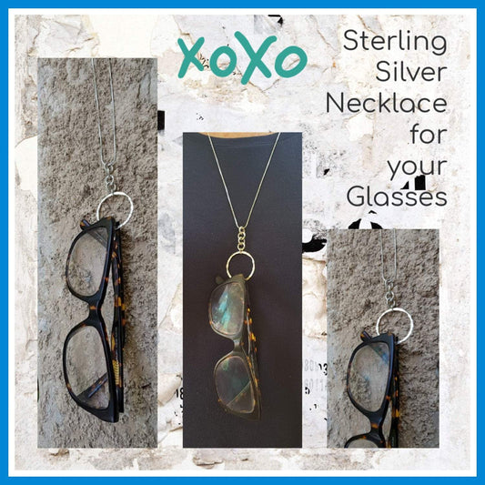 Collier de créateur bohème-chic en argent sterling pour porter vos lunettes. Unisexe. Cadeau de Saint-Valentin