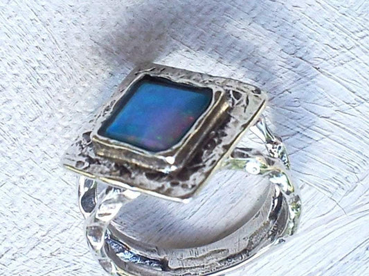 Beauté Boho Chic : Bague hippie en argent sterling avec pierres d'opale bleue