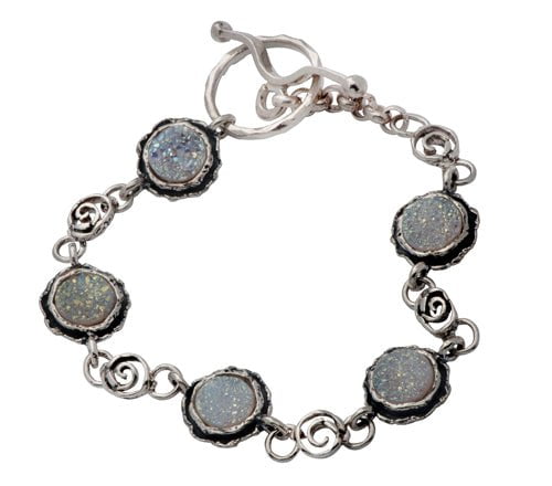 Bracelet pour Femme en Argent Massif et Goldfilled 14 carats serti d'opales bleues