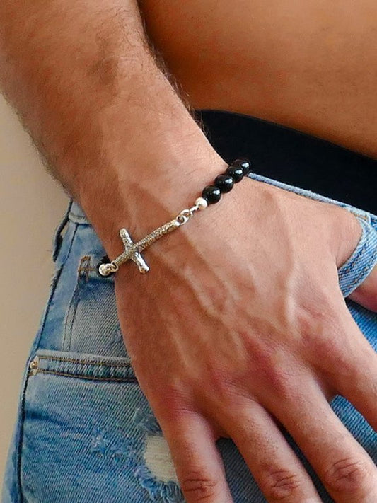 Bracelet pour Homme Croix en Argent et Bracelets Onyx pour Homme.