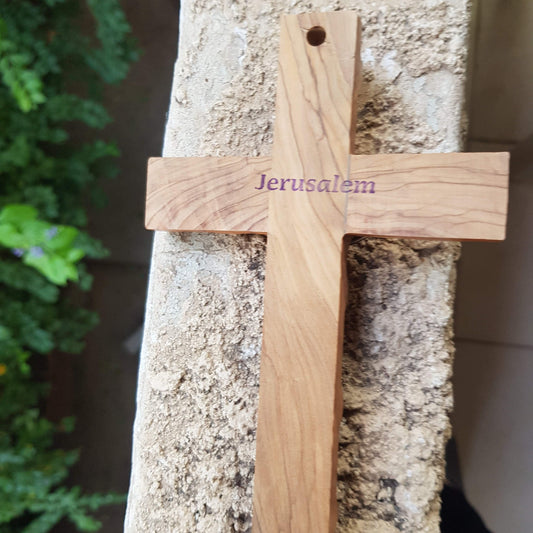 Croix Bluenoemi | Croix en bois d'olivier de Bethléem et de Jérusalem en Terre Sainte. Croix à vendre.