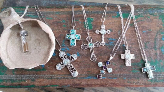 Pendentif croix avec verre romain. Collier Terre Sainte pour femme. "Ma seule et unique croix"