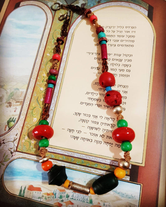 Designer Israeli Sterling Silver Necklace with Roman Glass & Gemstones – Handmade by Bluenoemi