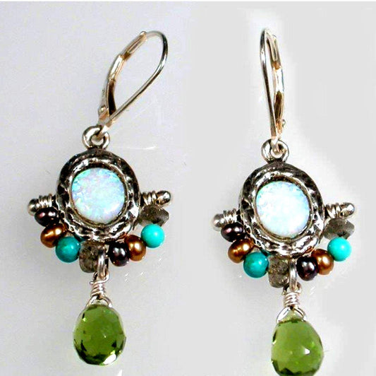 Boucles d'oreilles pour femme boucles d'oreilles pierres précieuses opale bleue/ orecchini argento / pierres précieuses bijoux boho chic/ schmuck israélien/ cadeau Valentine