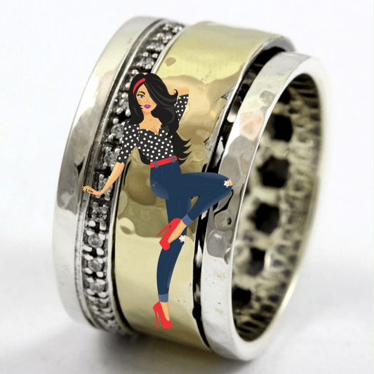 Bague Spinner de créateur pour femme en argent et or sertie de zircons.