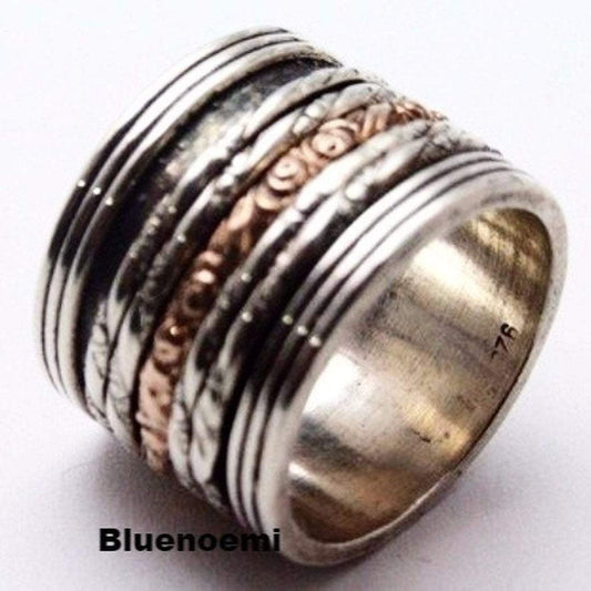 Bague tournante élégante. Argent Or 9 carats. Anneau de filature de méditation Boho.