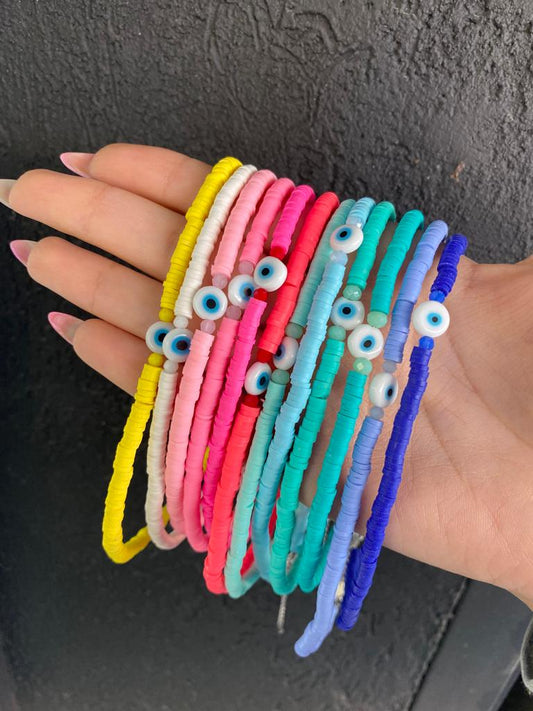 Bracelet de protection contre le mauvais œil avec des perles colorées. On pense qu'il prévient la malchance et le mauvais œil.
