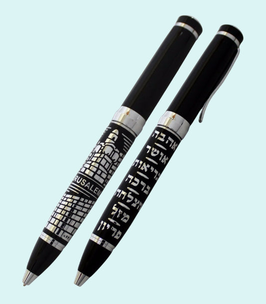 Stylo à bille doré Jérusalem hébreu sept bénédictions Israël Judaica cadeau avec boîte de présentation