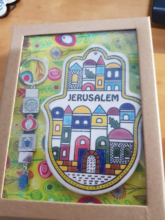 Coffret cadeau pour lui Coffret cadeau pour sa cuillère de repos en céramique arménienne et un porte-clés à breloques Hamsa