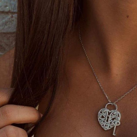 Collier pendentif coeur avec une petite clé. Collier en argent sterling pour femme.