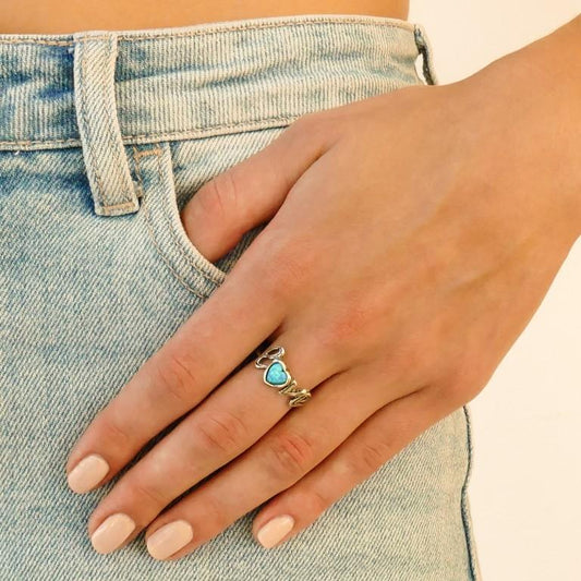 Élégance sincère : Bague d'amour en argent avec opale et cœur pour femme