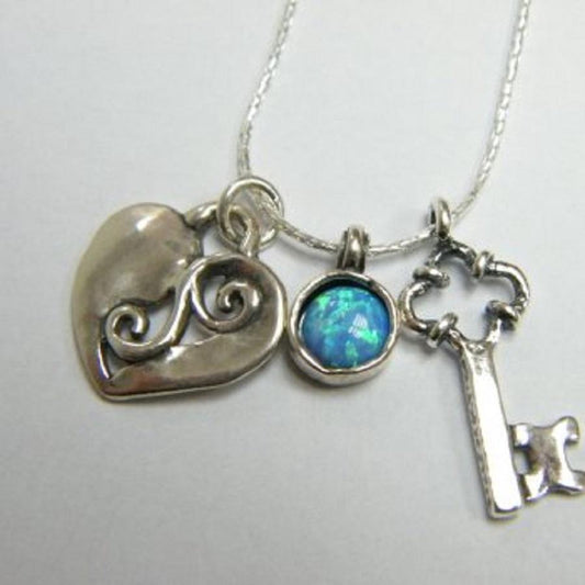 Collier de charmes d'art portable en argent sterling avec un cœur et une clé du pendentif cœur.