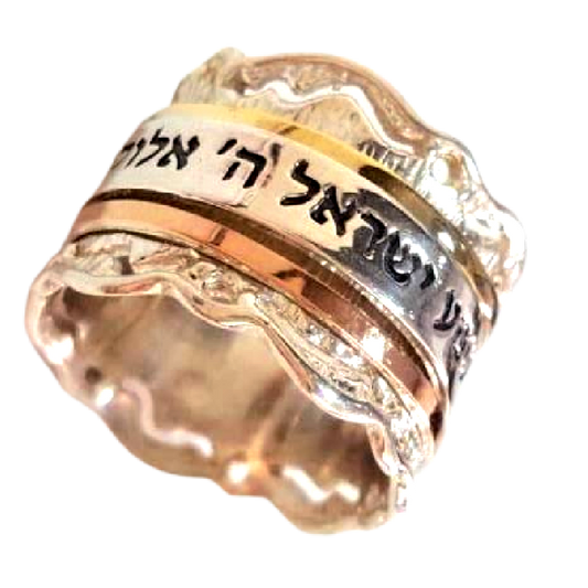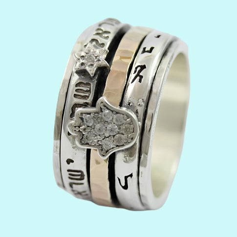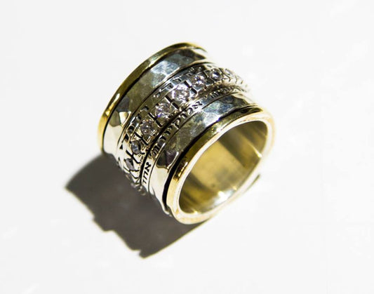 Anneau de bénédiction d’anneau de méditation hébraïque. Bague Spinner en argent et or pour femme.