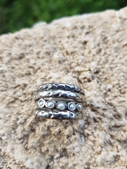 Bague hippie, bague Boho, bague en argent sterling, bague avec perles.
