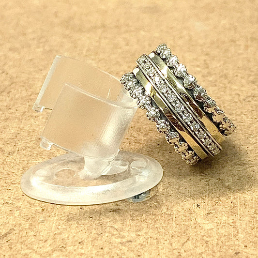 Bague Spinner en argent et or d'israël, bague fidget en zircons CZ pour femme