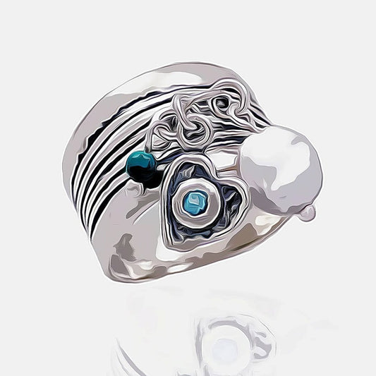 Bague en perles d’Israël pour femmes, bagues en argent perles pour femmes, bague en argent bohème für frauen