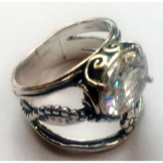 Bague en argent sterling Israel Jewelry sertie d'un zircon cubique. Bague bohème de créateur israélien.