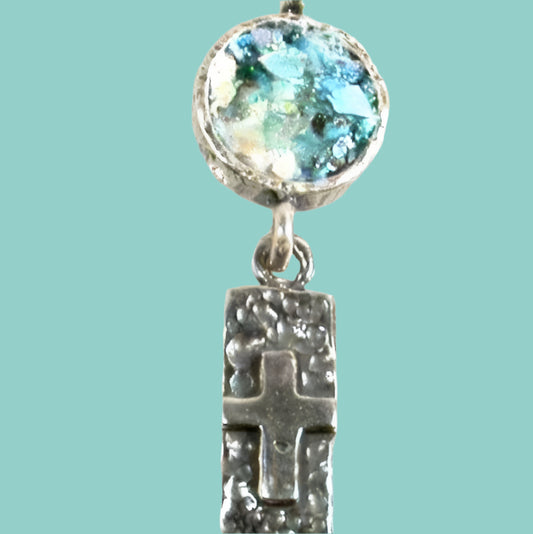 Pendentif Bluenoemi Christian Cross, croix martelée en argent sterling avec verre romain