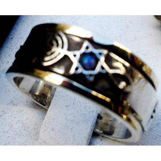 Bague spinner messianique argent et or étoile David poisson menorah bague