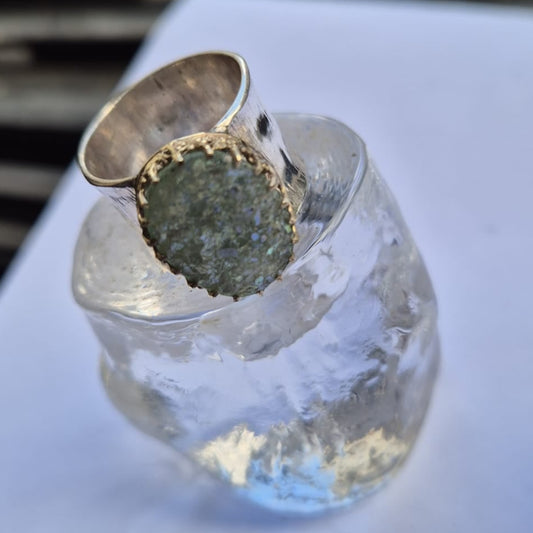 Harmonie Radieuse : Bague en Argent Sterling Sertie d'une Pierre Druze Brillante