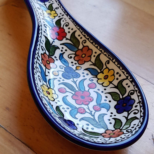 Cuillère de repos en céramique arménienne d'Israël décor de sept espèces