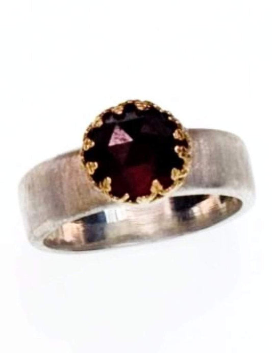 Bague en argent et or 9 carats sertie d'un grenat taille rose pour femme